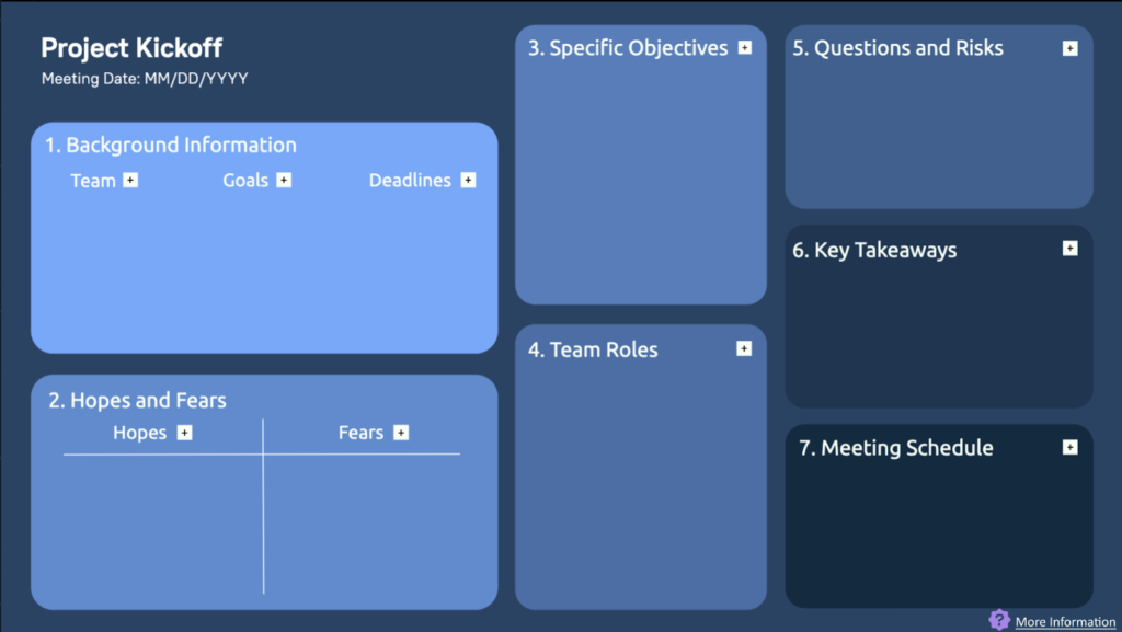 The Project Kickoff template includes various steps to help you and your team start your project off right.