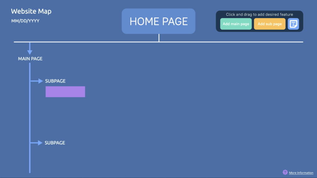 The website map will help you and your team organize ideas to build (or rebuild) a website. It includes attachments for main pages, sub pages, and extra notes.